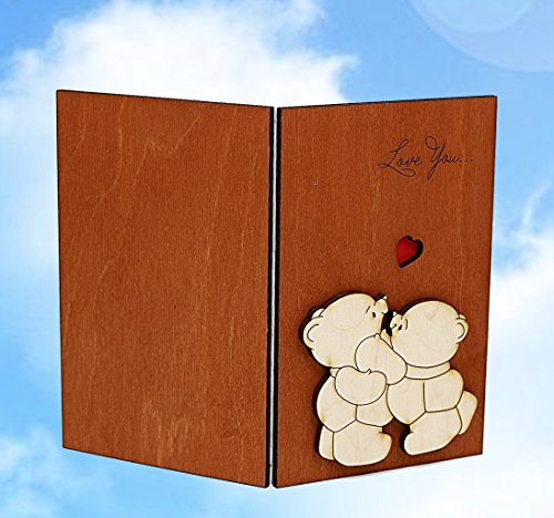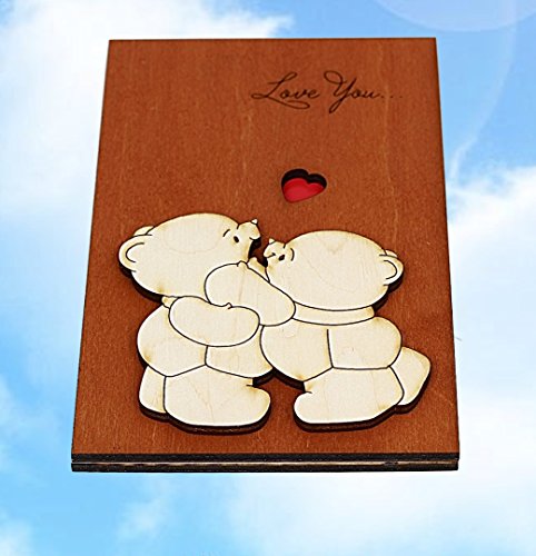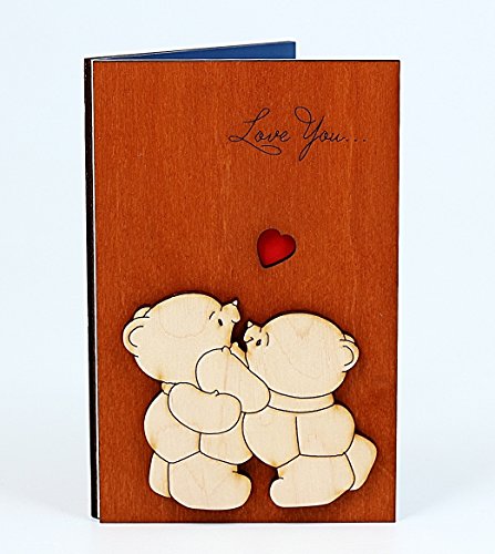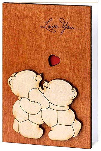 Handmade Real Wood Cute Love You Teddy Bears Card Best Novelty Wooden Sentimental Funny Present for Boyfriend Girlfriend Husband Wife Dear Friend or Dad for Father's Day from Him Son or Her Daughter