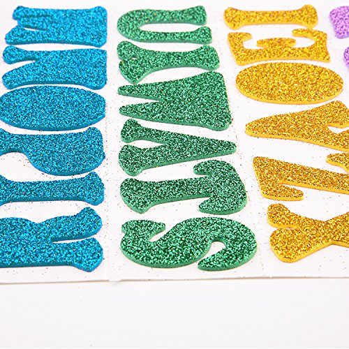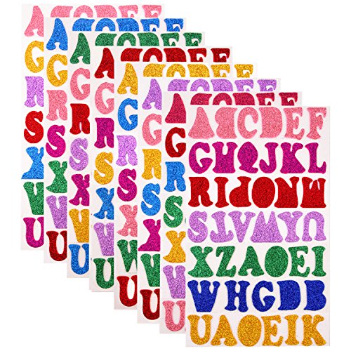 Sunmns 328 Pieces Glitter Foam Stickers Self Adhesive Alphabet Letters Stickers, 7 Colors Random, 8 Sheets