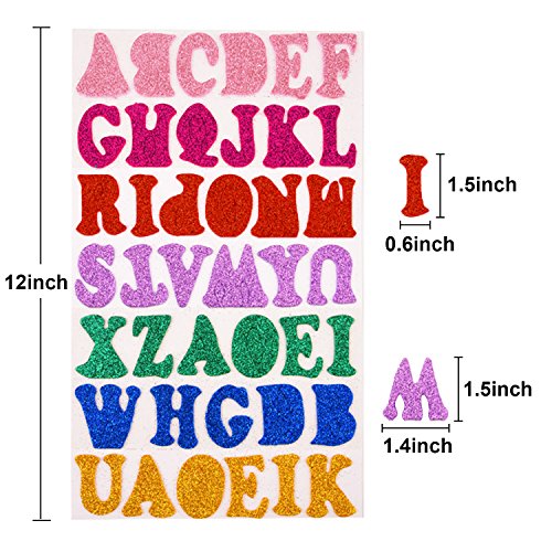 - Package includes: eight 12 x 6.5 inch sheets of assorted stickers, 328 pieces letters, 7 colors (Assorted Colors), letters size: 1.5 inch in length, 0.6 inch to 1.4 inch in width, material: foam