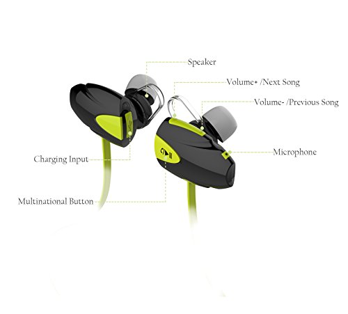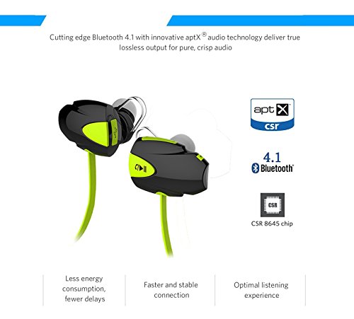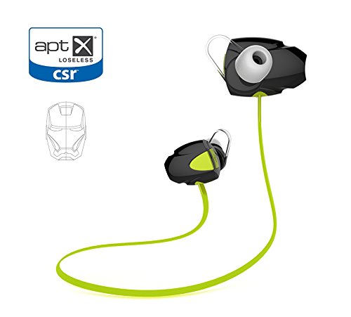 ZIOCOM Iron Man CSR Bluetooth 4.1 Wireless hands-free Sport Sweatproof Headphones for Running Gym Exercise Headset Earphones with APT-X/Mic for iPhone Samsung Galaxy and Android Phones (Green)