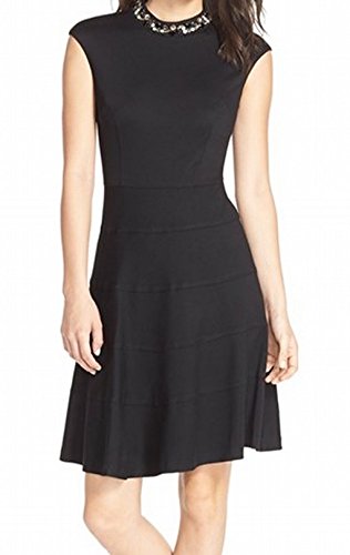Product DescriptionFit and flare dress with seam detail on skirt and beaded neckline0