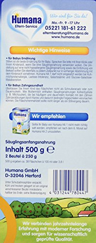 -. Binding : Lebensmittel & Getränke -. Brand : Humana -. EAN : 4031244780447 -. Feature : Humana: Kontrollierte Qualität seit über 60 Jahren / GOS: wichtige Ballaststoffe wie sie auch in der Muttermilch vorkommen / LCP: langkettige, mehrfach ungesättigte Fettsäuren wie sie auch in der Muttermilch vorkommen / Allergenarm: durch besonders schonend aufgespaltenes und damit allergenreduziertes Milcheiweiß / Ohne glutenhaltige Zutaten hergestellt (lt. Gesetzt) -. Label : Humana -. Manufacturer : Humana -. Model : 78044 -. MPN : 78044 -. NumberOfItems : 1 -. PackageQuantity : 1 -. PartNumber : 78044 -. ProductGroup : Grocery -. ProductTypeName : GROCERY -. Publisher : Humana -. Studio : Humana -. Title : Humana HA 1 Hypoallergene Anfangsnahrung, 1er Pack (1 x 500 g)