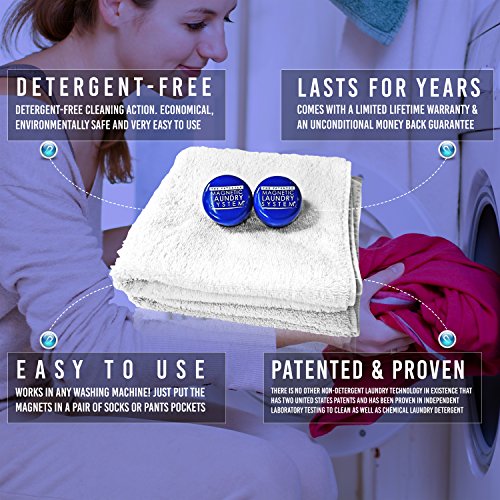 LASTS FOR YEARS. COMES WITH A LIMITED LIFETIME WARRANTY AND AN UNCONDITIONAL 30-DAY MONEY BACK GUARANTEE... One package of two Laundry System units can be used over and over again for many years. No need to keep buying expensive $20 bottles of detergent every few weeks. Great for saving money and in drought areas because you can bypass the rinse cycle since there are no chemicals, saving 20-40 gallons of water per wash and the energy to run it!