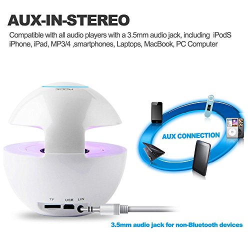 Cool changing breathing lights: The LED lights color changes with the music, it creates a bright and romantic atmosphere in which it can share the relaxed and pleasant moment with your friends.Besides,Spherical charming body would be a great option for decoration such as for your computer/tablet desk or living room.And GLOSSY FINISH and FUTURISTIC DESIGN makes it an ideal Birthday gifts or memorial gifts.