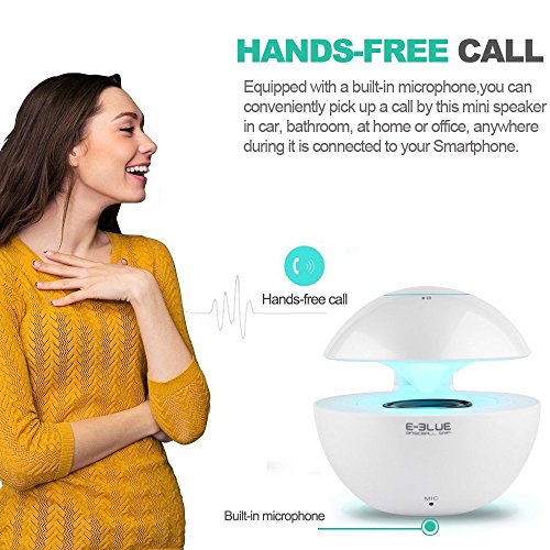 E-3LUE Portable Bluetooth Speakers with LED light and Built-in Mic for Hands-Free Calling,3.5mm Line-In,Micro TF Card Support,mini wireless speaker for Computers, Laptops, Cell Phones (White)