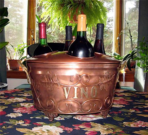 -. Feature : Made from durable stainless steel. / Beautiful copper finish. / Holds up to four bottles. / Removeable top for easy filling, emptying, and cleaning. / Handles on sides for easy transport.