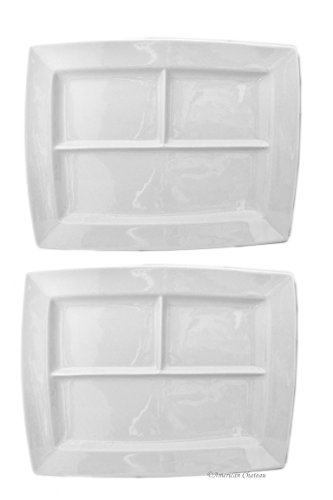 Studio : American Chateau Publisher : American Chateau Product Description PORCELAIN PLATTERS: Set 2, large divided dishes or serving platters.; MULTI USE: Great as serving trays, or for chocolate, cheese, or meat fondue.; PRACTICAL: Dishwasher, Oven Microwave safe.; HIGH QUALITY: Heavy, thick porcelain is long lasting. ; Approximate Size: 1 1/4 inches x 10 9/10 inches x 13 9/10 inches 0