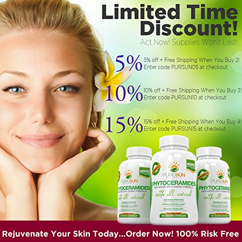 -. Feature : ★ BETTER QUALITY, BETTER RESULTS: Forget the overpriced, low potency Phytoceramides that are being offered. Gluten-based wheat ceramides? Yuck! Synthetic phytoceramides? Pass! Naturally-hydrating rice-based phytoceramides designed to produce smoothness and a more youthful look? Yes please! You want the best. You want Pure Sun Naturals. / ★ THE PURE SUN NATURALS ADVANTAGE: Nourish your body with science based supplements. Our scientifically designed Phytoceramides formulation is designed to get you the best results in the least amount of time. Replenish ceramides and you'll be on track for supporting healthy skin! / ★ HOW IT WORKS: Ceramides are fatty molecules in our skin that help to produce a more natural, youthful, smoother appearance. As we age, we produce less ceramides, resulting in wrinkles and fine lines. Replacing ceramides with plant-based ceramides aka Phytoceramides may help in supporting a more healthy complexion. / ★ UNMATCHED PURITY: Our products are 100% safe and natural. We only use scientifically backed ingredients in vegetarian capsules, and manufacturer our products using cutting edge methods in GMP (good manufacturing processes) certified FDA-approved facilities in the USA. / ★ THE PURE PROMISE: We at Pure Sun Naturals are so confident in our product, and that you'll experienced the desired results in a matter of days and weeks, that we're backing your purchase with our unmatched 90 Day Guarantee. Don't absolutely love your new Phytoceramides supplement? Just get in touch, and we'll take care of you. Guaranteed.