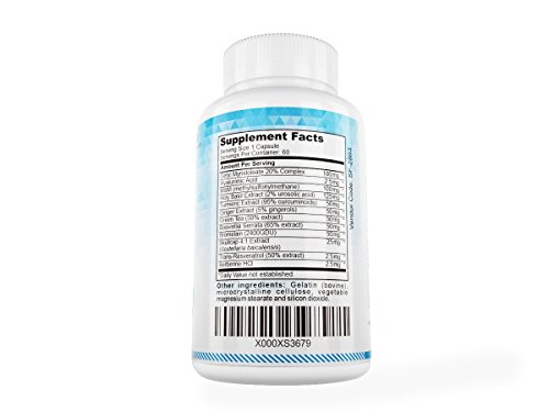 NATURAL INGREDIENTS-Packed with 100% natural herbs such as Holy Basil, Turmeric, Ginger, Green Tea, Boswellia Serrata, Bromelain and Skullcap, helps to boost joint health to avoid inflammation, swelling and pain. Includes Trans-resveratrol, a natural polyphenolic that has anti-inflammatory and antioxidants properties that helps maintain joint cartilage.