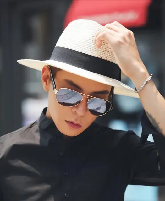 | [해외][Dexing] 여름 태양 모자 남성 캐주얼 휴가 파나마 밀짚 모자 챙이 넓은 비치 재즈 모자 |