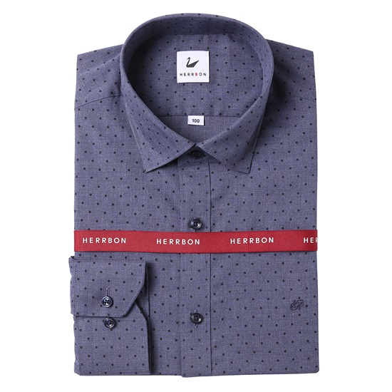 -면혼방 소재의 도트무늬의 스냅부착된 슬림핏 기모남방.