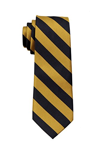 Product Description Complement your sons attire with this Boy's College Striped Necktie. Stripes are approximately 0.75 inches. These Boy's neckties are narrower and shorter than a regular men's tie -see dimensions above. These Boy's neckties are suitable for boy's up to 5 ft. in height. Made from a premium woven textured microfiber fabric. 0