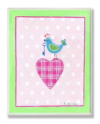 The Kids Room by Stupell Blue Bird Perched on Pink Plaid Heart Rectangle Wall Plaque
