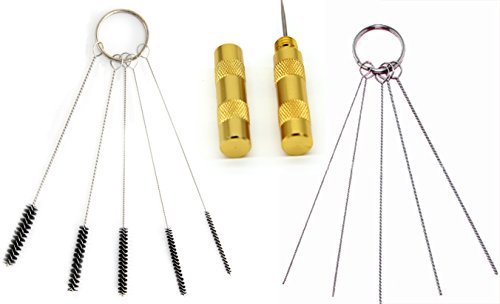 SYWHZ 3 In One Airbrush Cleaning Kit Tools(Include Five Diameters Nylon brushes & Five Nozzle Cleaning Needles & One Golden colour needle tool)