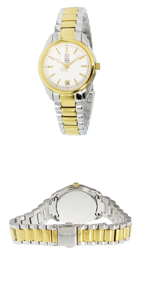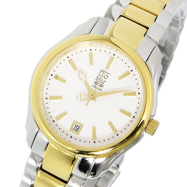 クオーツ、日常生活防水、日付カレンダー、カラー:ホワイト(文字盤)、ゴールド/シルバー(ベルト)