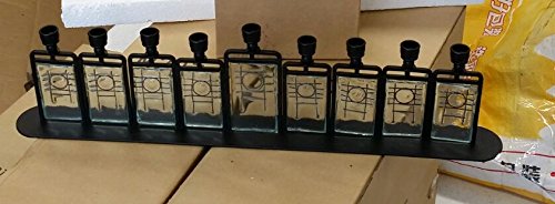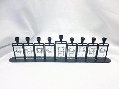 Glass Hanukkah Menorah - Black with Engraved Glass Stems and Antique Finish Design