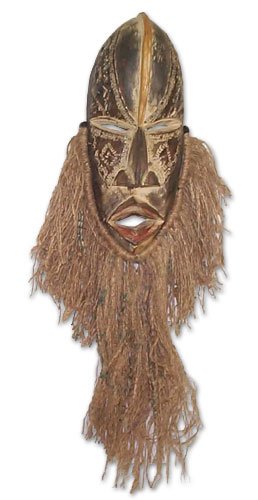 NOVICA Decorative Large Sese Wood and Brass Wood Mask, Brown, 'Spirit Of Wealth'