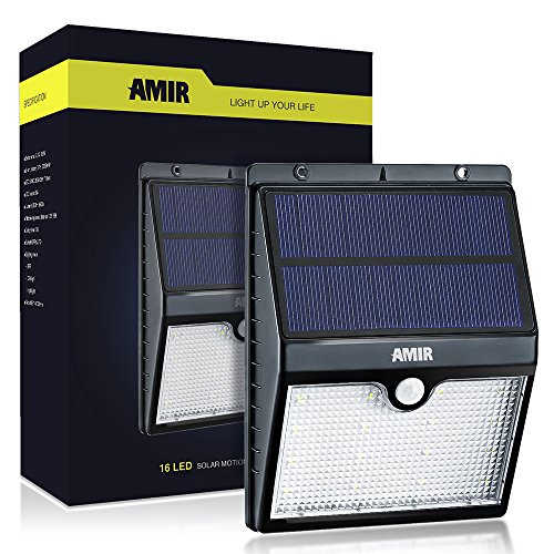 - BRIGHTER AND BIGGER LED: Updated version! Get rid of those similar solar lights with 4 LEDs which with only 80 Lumens or 12 LEDs with low Lumens. This AMIR solar lights with 16 brighter LEDs have about 250 Lumens output is brighter than your imagination. Never complaint of the brightness of those old-fashioned motion sensor lights anymore!
