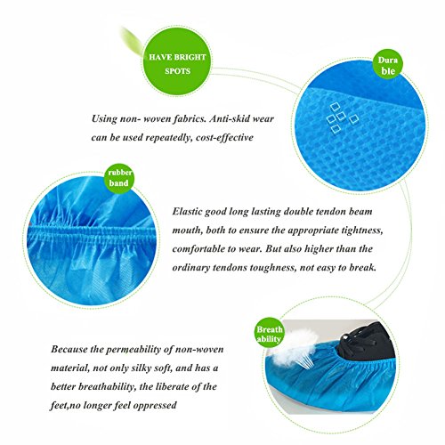 - WELL DESIGNED: Non slip shoe covers, to avoid slips and falls, full elastic band in ankle for fit to shoes. Durable material ensures that doesn't tear or rip easily; comfortable and breathable.