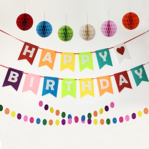 Studio : Elegant Publisher : Elegant Binding : Health and Beauty Product Description 1. Elhpbwhty Soft Felt Cloth Happy Birthday Banner Flags Sign Decorations Set with Colorful Pom Pom Balls Garland for Birthday Party Decorations Supplies 2. 5.12*7.09 inch each banner, it have 14 letter birthday banners, 6 pcs 6inch Colorful Tissue Pom Pom Ball and 4M Garland 3. Each banner have each one color. 6 colors Pom Pom Ball and and 7 colors circles garland 4. You can use it indoors or outside to decorate a birthday party in any location 5. Hope you have a nice party with your family and friends. 0