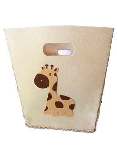 Collapsible Felt Storage Bin - 12" X 12" 14" (Beige Giraffe)