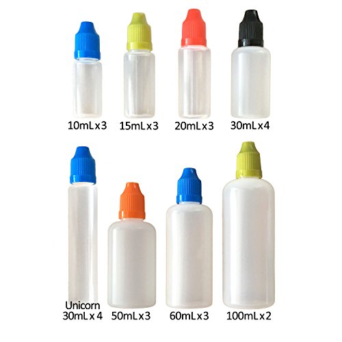 - 25 count combo pack of easy to squeeze dropper bottles in a variety of 8 sizes.