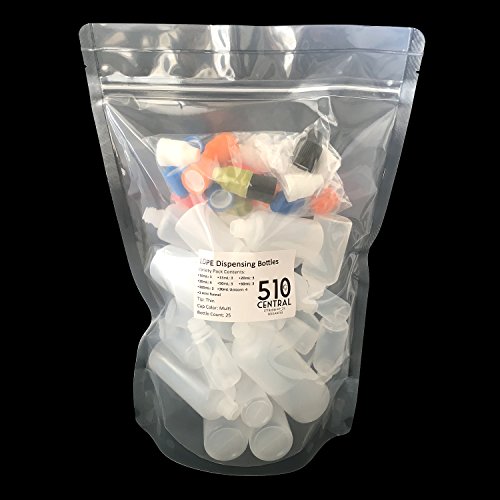 510 Central Dropper Bottle Variety Pack of 25 in Sizes: 10mL - 100mL Thin Tip LDPE Plastic