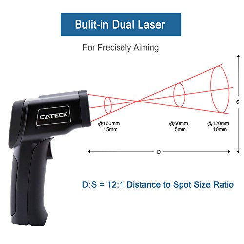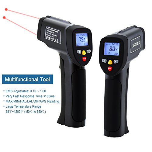 Cateck Lasergrip 817 Dual Laser Non-contact Digital Infrared Thermometer -58℉~1202℉ (-50℃ to 650℃) with Adjustable Emissivity & MAX/MIN/DIF/AVG/HAL/LAL Display, Black