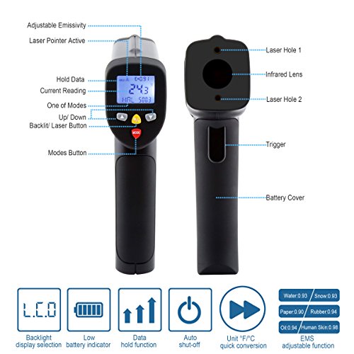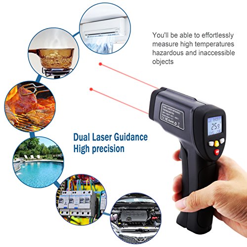 - WIDE APPLICATIONS: Infrared Technology makes this thermometer handy for household use or industrial measurements, such as cooking and barbequing, car maintenance, real estate, fire-watch, electrical engineering, and a host of other tasks