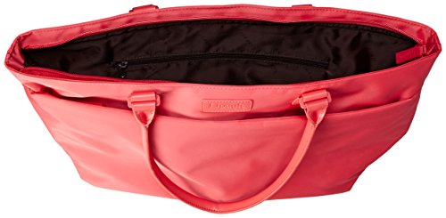 - Feature : Shoulder strap drop: 12.5" / Two exterior zipper pockets and one interior zipper pocket / Wide lightweight tote bag with logo patch and dual shoulder straps in contrast texture
