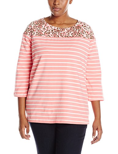Caribbean Joe Women's Plus-Size Three Quarter Sleeve Boat Neck and Print Top, Melon Frost, 1X