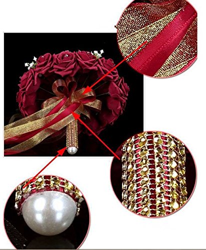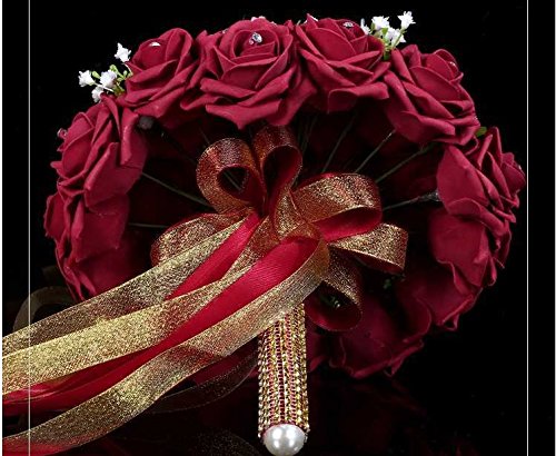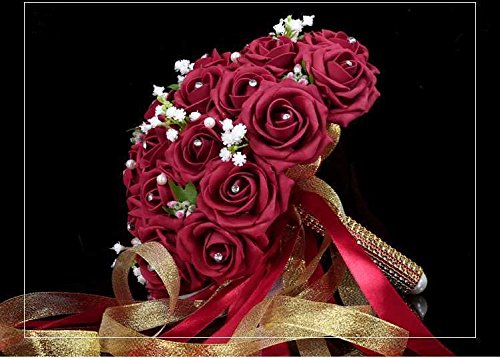 - Feature : Bridal Bouquet made with wine red Roses with Pearls,Stain Ribbon Handle / 30pcs Bridal Bouquet 22-24cm W 23-26cm H / Silk flowers won't wilt in the heat or freeze in the cold. The consummate choice for all weather conditions / You can use flowers that may normally be out of season and there are also a wide variety of colors, above and beyond the limitations of mother nature. / The silk flowers available to us today are so glamorous and realistic you will be amazed. We think that many of the flowers are even more vibrant and beautiful that their fresh counterparts.