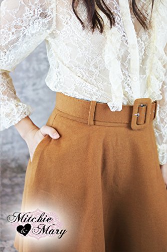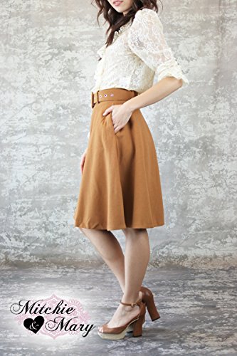 -. Title : Mitchie & Mary フレアスカート ボリューム ベルトつき レディース フレア ウールブレンド (M, キャメル)