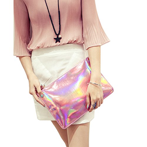 YOUR GALLERY Women's Reflective Sparkle Holographic Envelop Handbag Evening Bags