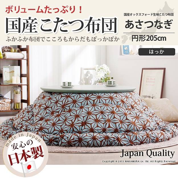 商品について:クッションやカバーにも使われる綿100%の丈夫な国産オックスフォード生地を使用した日本製のこたつ布団です。国内工場で綿入れ・縫製をしたこだわりの一品☆ボリュームたっぷり!すみまでしっかり綿が入ったふっかふかのこたつ布団です。