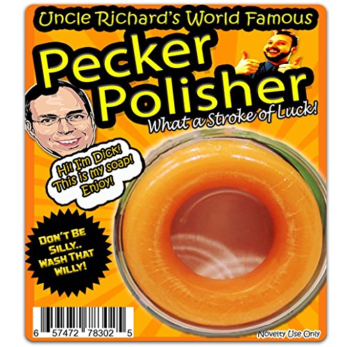 Studio : Gears Out Publisher : Gears Out Binding : Toy Product Description Rise and Shine! Uncle Richard's Pecker Polisher Soap turns a humdrum morning shower into a deeply relaxing experience! You're morning routine will truly be a pleasure. As soon as Uncle Richard gifted the world this amazing wiener cleaner, shower times for men increased exponentially. Getting really, really, really clean feels so good! Gag gifts for men have never been so exciting. You can be certain every gift-giving occasion will have a happy ending! Slip the Pecker Polisher in as a naughty stocking stuffer or wrap it up for birthday, anniversary, or bachelor party. Any man would enjoy this unexpected stroke of luck! FOR NOVELTY USE ONLY 0