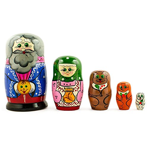 -. Title : 7" Set of 5 Kolobok, Babushka and Dedushka Fairy Tale Russian Nesting Dolls