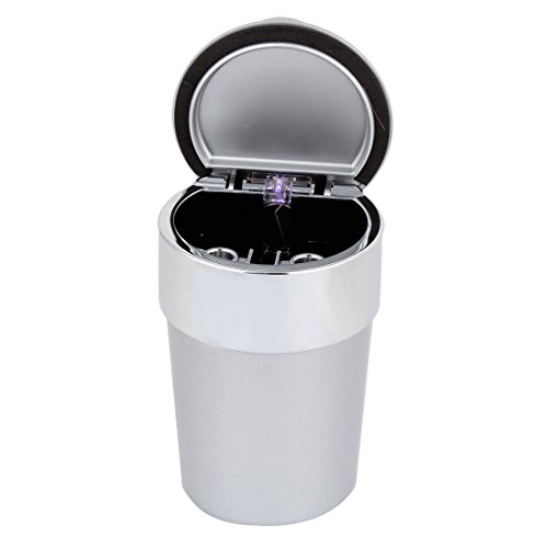 -. Feature : Product Name: Car Ashtray; Material: Plastic / Color: Silver Tone / Package Content: 1 x Car Ashtray / Dimensions: 11.5 x 7.5cm/ 4.5 x 3.0 inches(H*D) / Net Weight: 110g