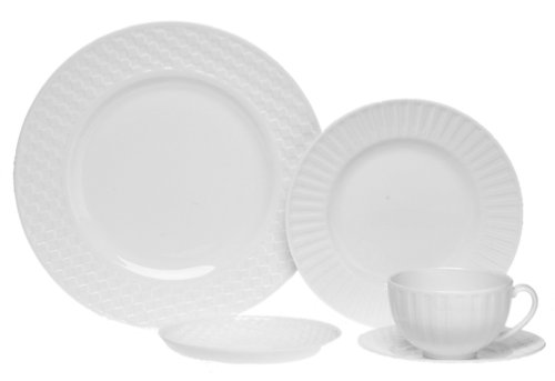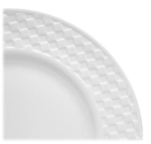 Amazon.com Review Embossed with simple geometric patterns, the all-white pieces in this single place setting are perfect for use at dinner, breakfast, or lunch: night and day. Their unleaded glaze gleams brilliantly--just what you'd expect of Wedgwood bone china, which has delighted royals and commoners since Josiah Wedgwood, the father of English potters, began making his renowned ceramics in 1759. The place setting consists of a 10-1/2-inch checkerboard-patterned dinner plate, an 8-inch fluted salad/dessert plate, a 6-inch diamond-patterned bread plate, and a 10-ounce fluted cup with diamond-patterned saucer. Containing about 50 percent animal bone, which accounts for its startling translucency, bone china is the strongest of all ceramic tableware--stronger even than porcelain or earthenware--and is dishwasher-safe. As avid collectors know, Wedgwood china lasts several lifetimes, making it esteemed as an heirloom. --Fred Brack 0