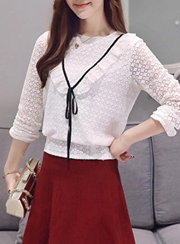 -. Title : (エンジェルムーン) AngelMoon レース カットソー 長袖 透け感 透かし編み リボン トップス レディース