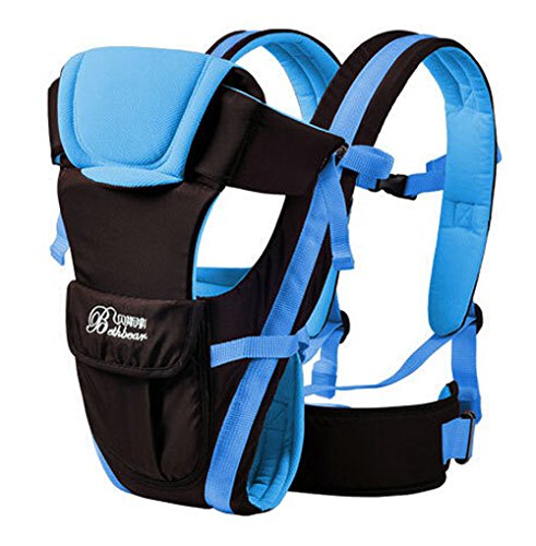 -. Feature : 4 carrying position modes: Chest way, kangaroo style, back carry, cross arm carry / High quality durable material, safe and exquisite design / Adjustable shoulder belt, double-protection safety buckle, 3D ventilating back pad / Suitable for carrying 2-30 months old baby kid / Weight-load: Maximum 18kg