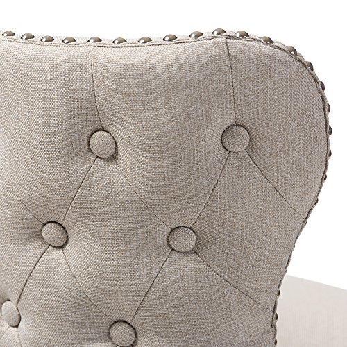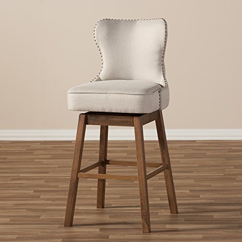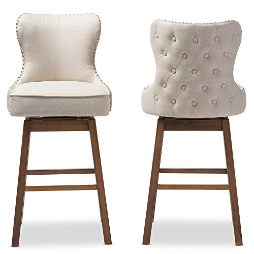 -. Title : Baxton Studio Marjolaine Walnut Wood Finish Button-Tufted Swivel Barstool (Set of 2), Light Beige