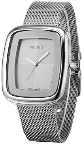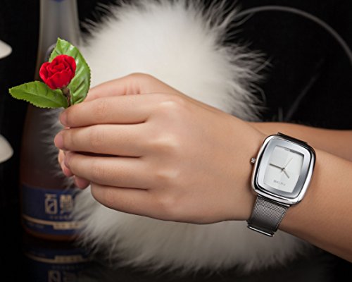 -. Title : Ladies Mens Square Case Analog Display Quartz Silver Stainless Steel Mesh Bracelet Luxury Watch (Silver)