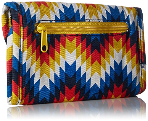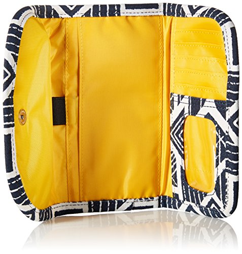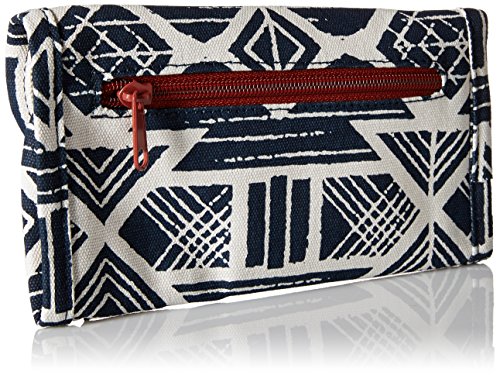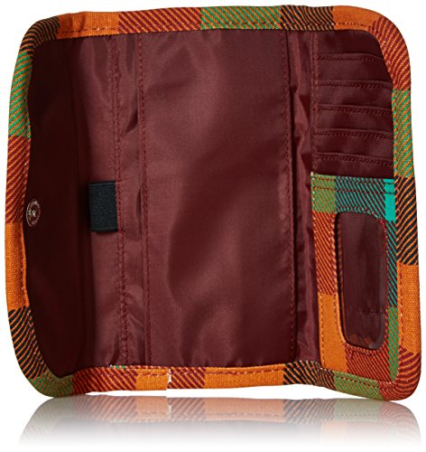 -. Feature : Tri-fold wallet, snap closure, one external zip pocket / Internal checkbook and pen Holder / Multiple internal cash, card, ID slots / Pockets: 3 interior slip, 1 exterior, 1 ID window, 5 card slots