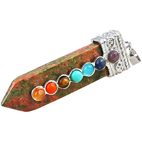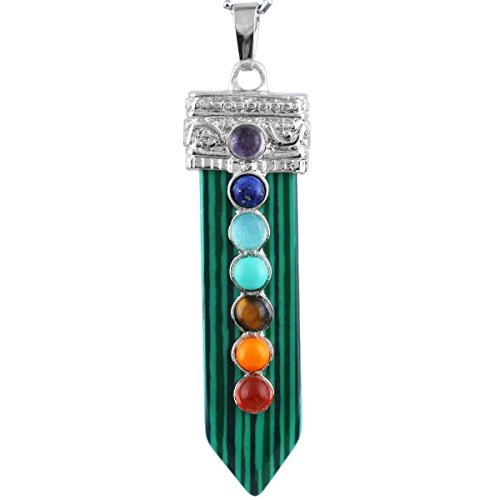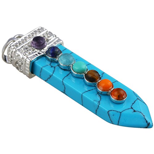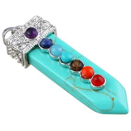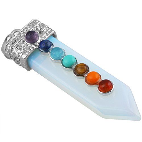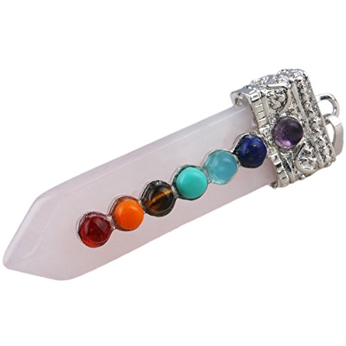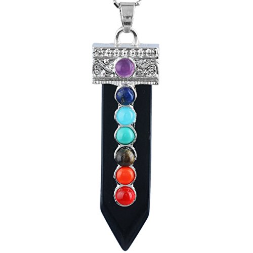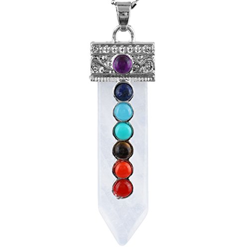 [Description] 7 Chakra Bead Crystal Point Pendant_Soword of Life_Healing Chakra Jewelry_for Necklace Size for pendant(approx)0.4``width x 2.1`` tall(11x55 mm);Size for 7 Chakra Bead(approx):4mm;Size for Hole Diameter is 4x6 mm_Weight:Approx 12 Gram/Pc(Pendant only _the chain in picture is not included.) Every piece is unique_you receive one(s) similar as pictured. Sword shaped_with 7 chakra bead on the front of the sowrd_the crystal points are good for heaing_banlancing_yoga.Silver charms fit for necklace and other jewelry crafts Perfect for both women and men and any occassions_jewelry collection_birthstone and more. Rock Quartz keeps negative energies away_ uncover and protect against evil attempts_ prevent bad intentions and arrest bad luck. It is a stone that has the power to act as an insulator for all things. It can stop negative vibrations and maintain positive vibrations.