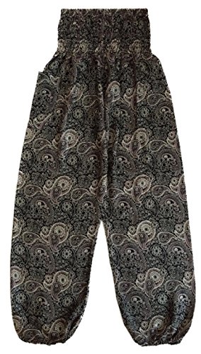 -. Feature : Light Weight, Loose Fitting, Baggy / One Size Fits (US 0-14) Waist 22" stretching to 42" (elastic material) Hip 30"-46"Length 40" Inseam 30" / Elastic Waist and Ankle / Comfortable, Easy to Wear & Quick drying / Perfect for Vacation, Travel, Relaxation, Yoga Exercise, Nightwear or Casual Wear