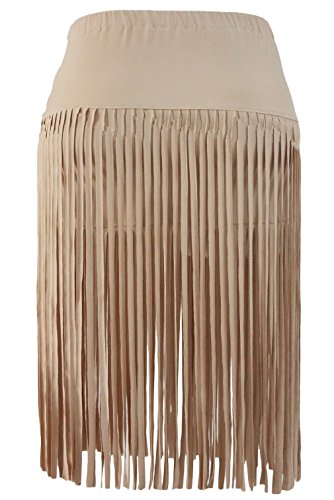 -. Title : (ラボーグ)La Vogue レディース スカート タッセル付き フリンジ ひざ丈 女性 ミニスカート 透け感 カジュアル 裏地 着痩せ タイト カーキ色