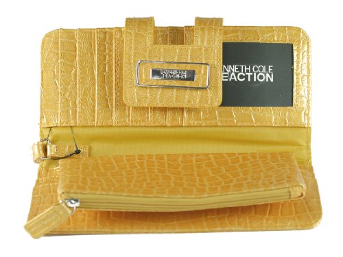 Kenneth Cole Reaction Orange Yellow Alligator Tab Wristlet Wallet