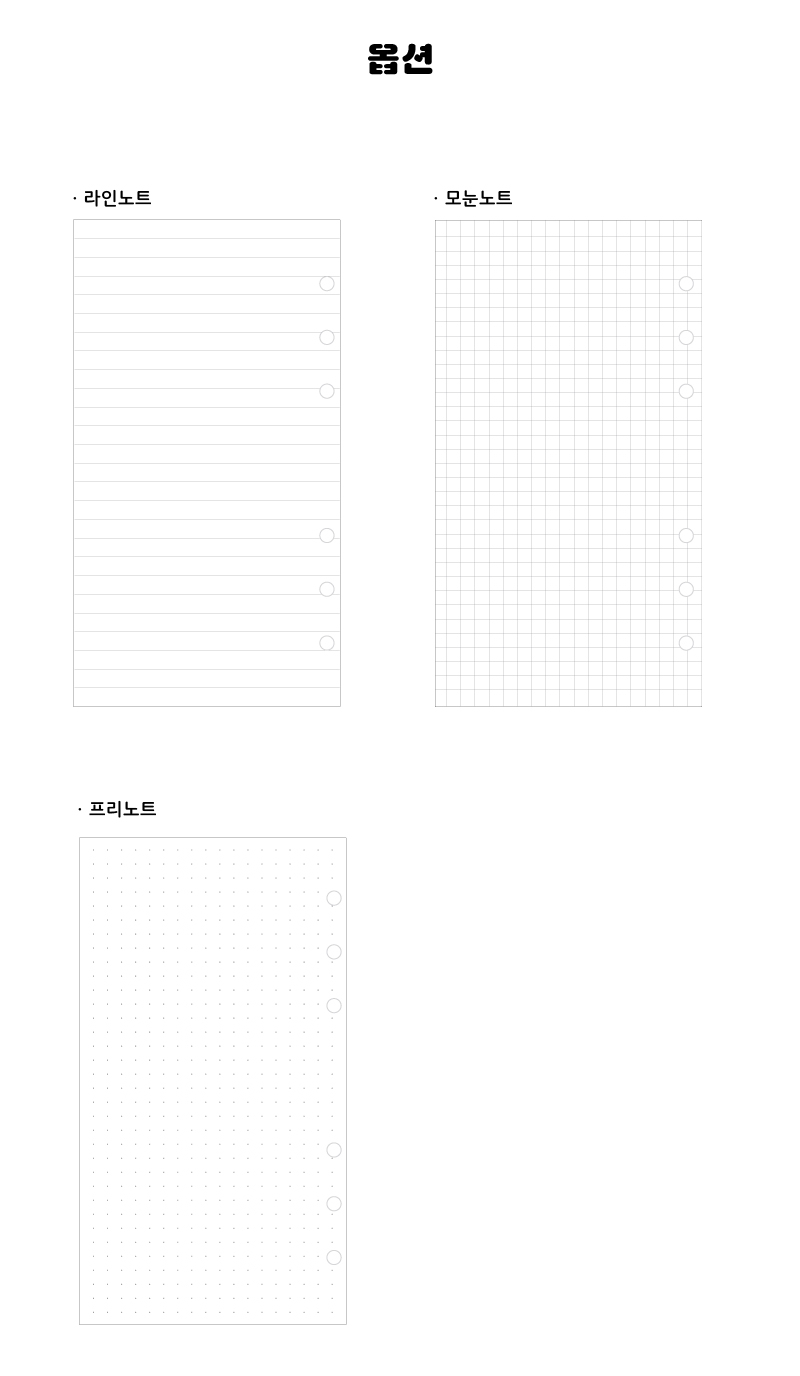 다이어리 커버 및 바인더, 그 외 속지는 원하는 스타일로 함께 구매하시어 DIY 하세요.