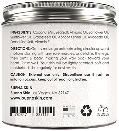 ►ALL NATURAL WITH NO CHEMICALS - Buena Skin Sweet Coconut Milk Scrub Has Powerful Nutrient Rich Ingredients Including Sweet Coconut Milk, Dead Sea Salt & 6 Essential Oils to Gently Exfoliate and Moisturize For Brighter And Even Skin Tone While Fighting Off Bacteria